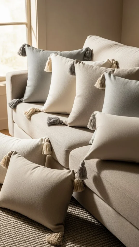 Tassel corners add movement without clutter. Neutral tassels keep the look simple while adding charm.