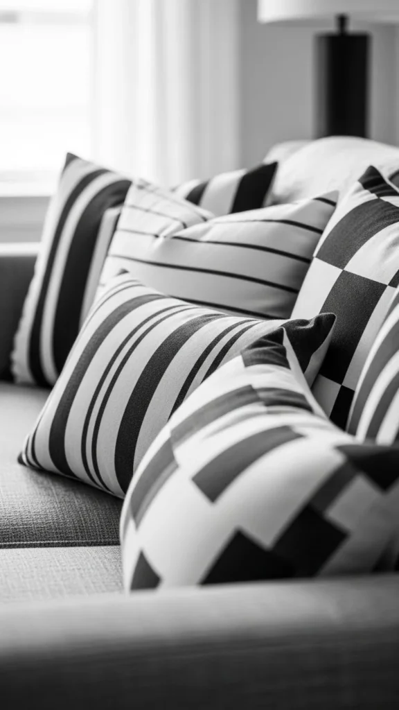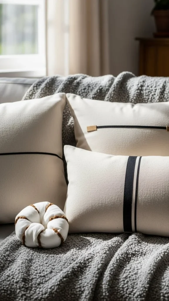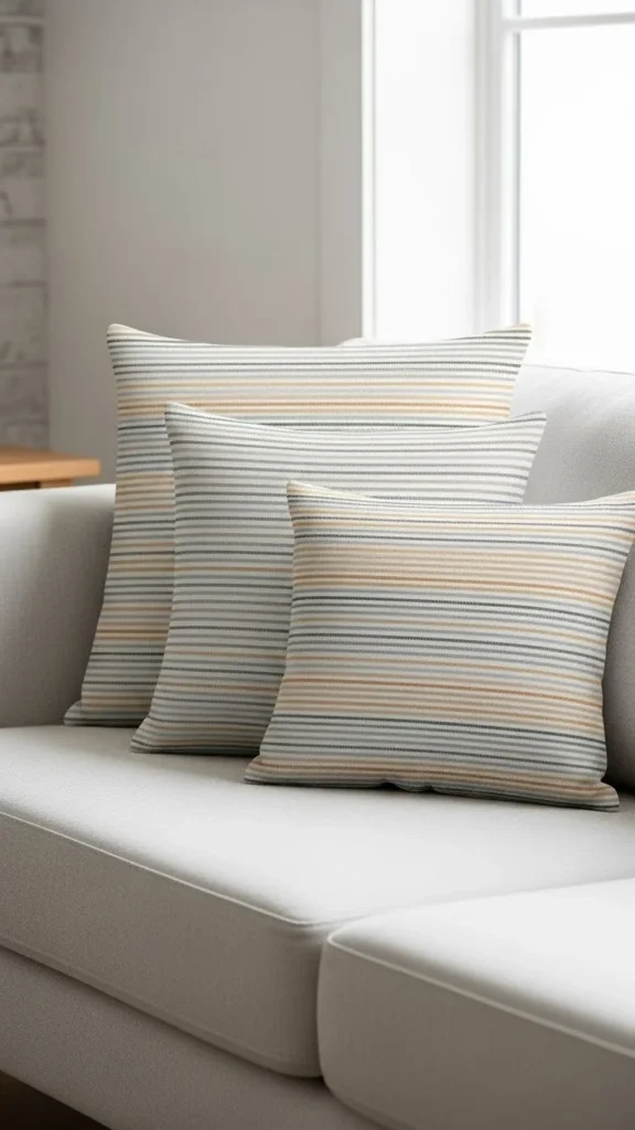 Striped pillows add structure without fuss. Thin stripes in neutral colors feel timeless and easy to style. They work in both casual and clean-looking rooms.
