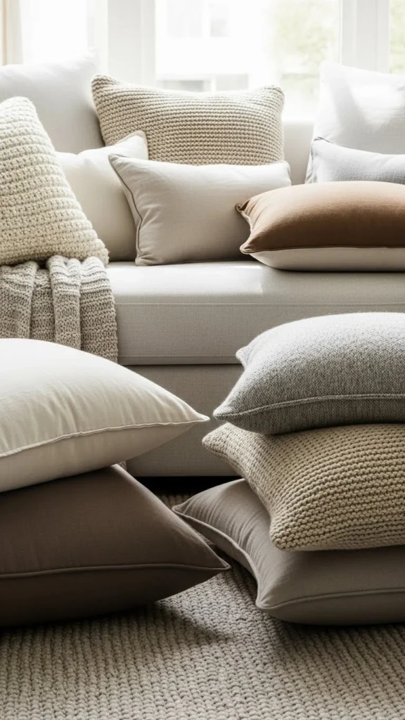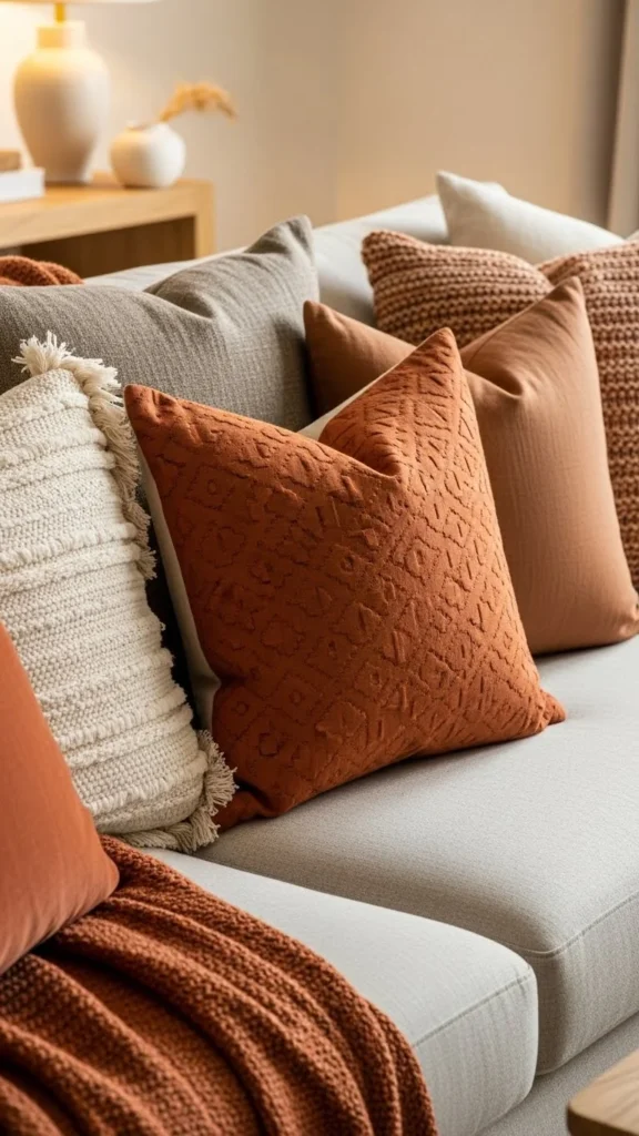 Earth-tone pillows add warmth without loud colors. Shades like clay, rust, and soft brown pair well with neutral furniture. They ground a space and feel welcoming.