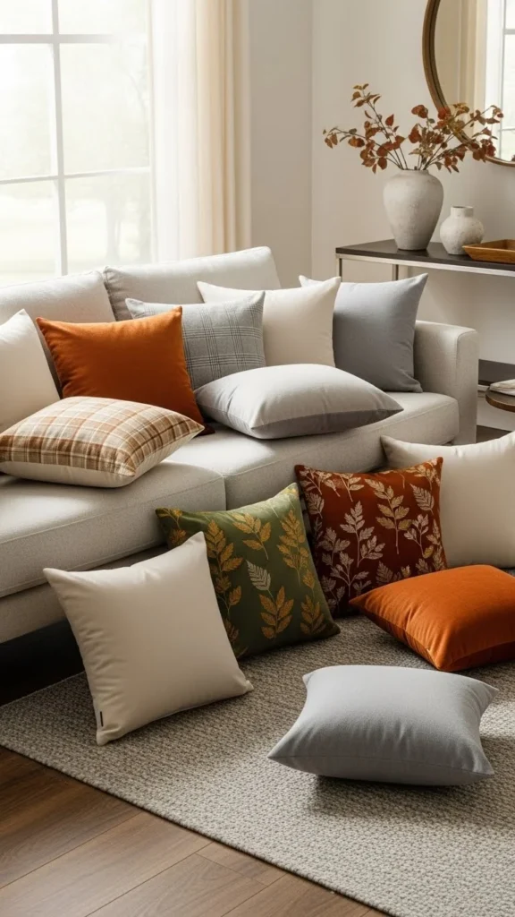 You can mix earth tones with creams and grays for balance. This keeps the sofa from feeling too dark. Budget-friendly pillow covers in these shades are easy to find.