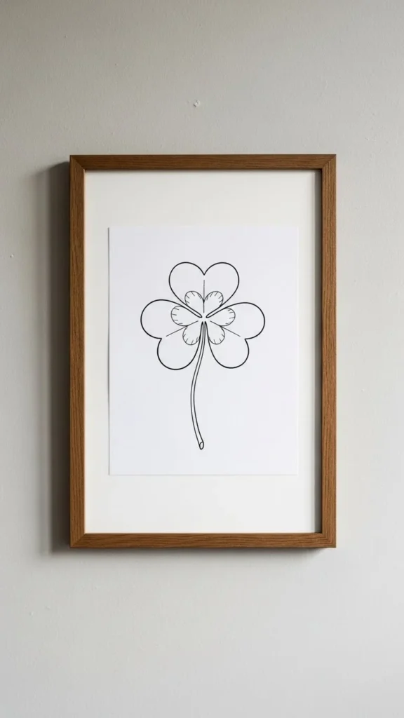 Line art clovers suit modern interiors. Simple black lines keep the look clean. Print designs at home to save money. Pair with slim frames for a tidy finish. This works well in bedrooms or study areas where visual calm matters.