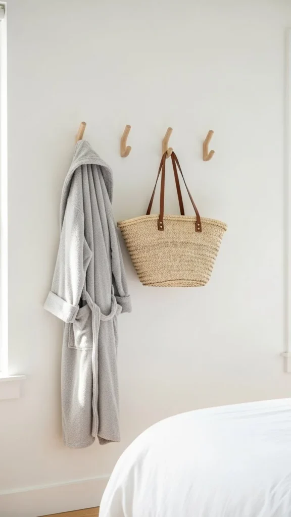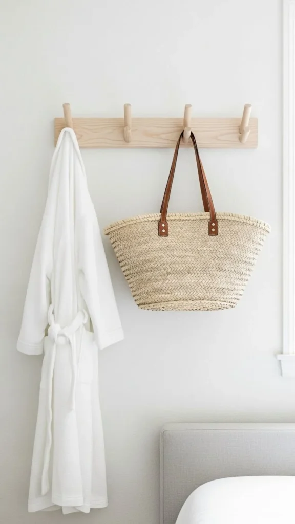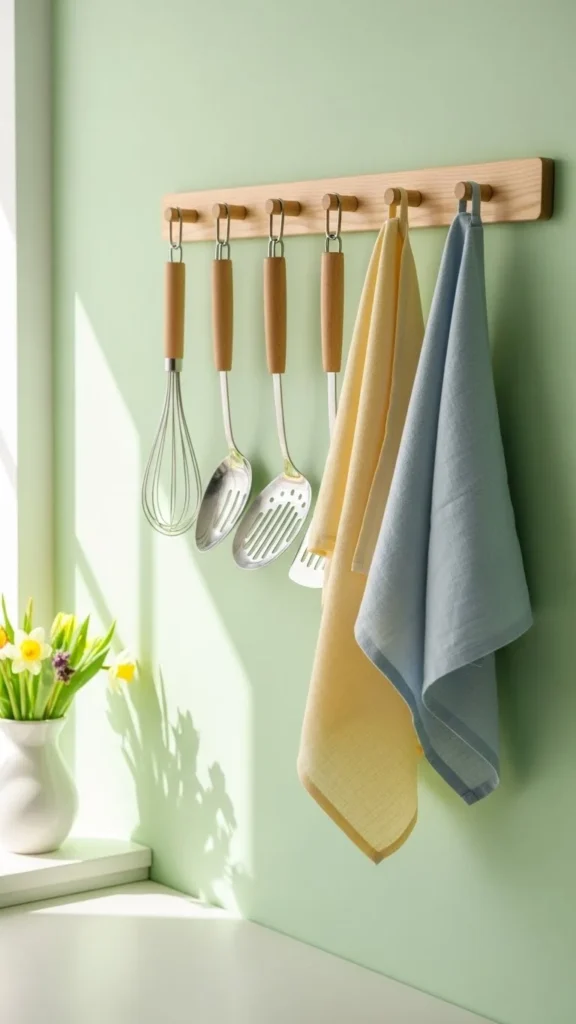 Hang towels, baskets, or utensils you use daily.