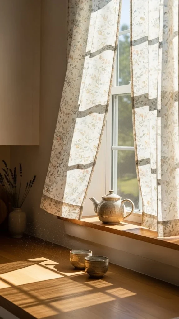 Changing kitchen curtains is one of the fastest spring updates you can make. Light floral patterns add charm while letting sunlight flow in. Choose small, simple prints instead of bold designs so the space feels relaxed.