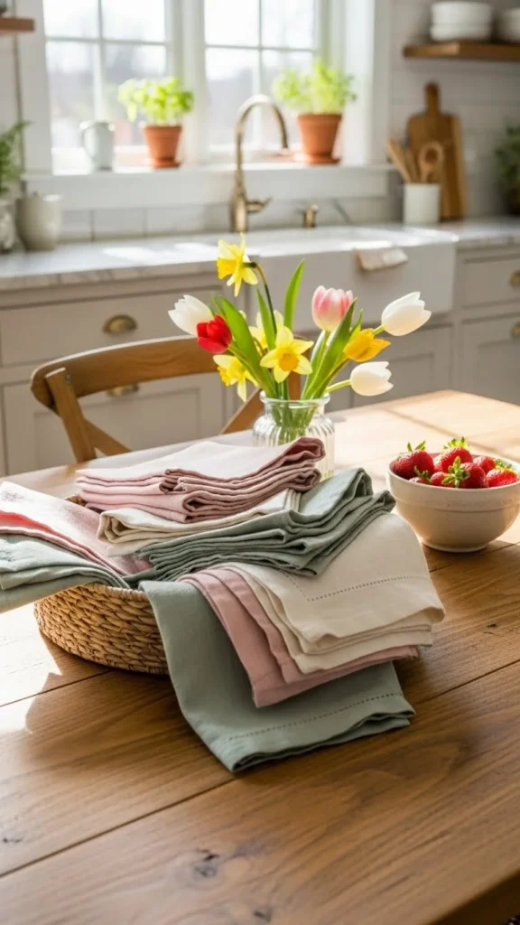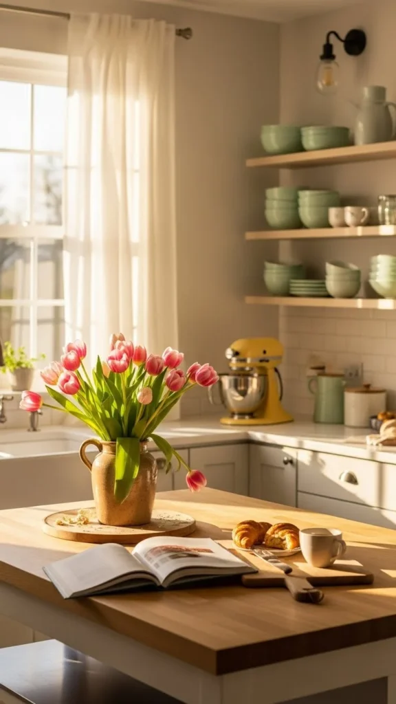 This small update adds color at eye level and makes the kitchen feel cared for. It’s one of the easiest ways to bring a spring mood into daily routines.