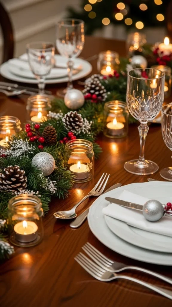 Scatter small jars with tea lights between place settings.
