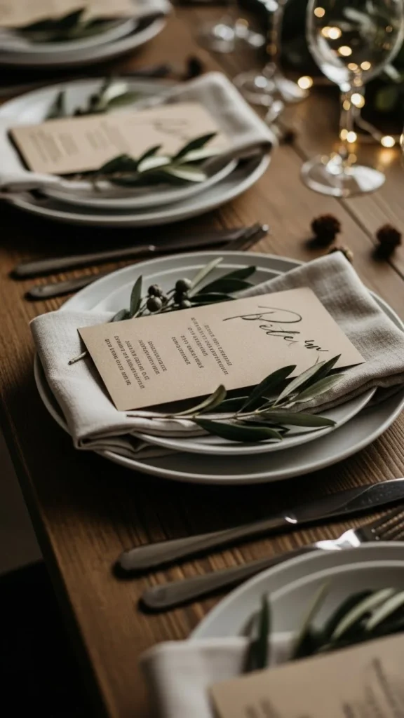Simple place cards make guests feel seen. Use kraft paper or plain white card.