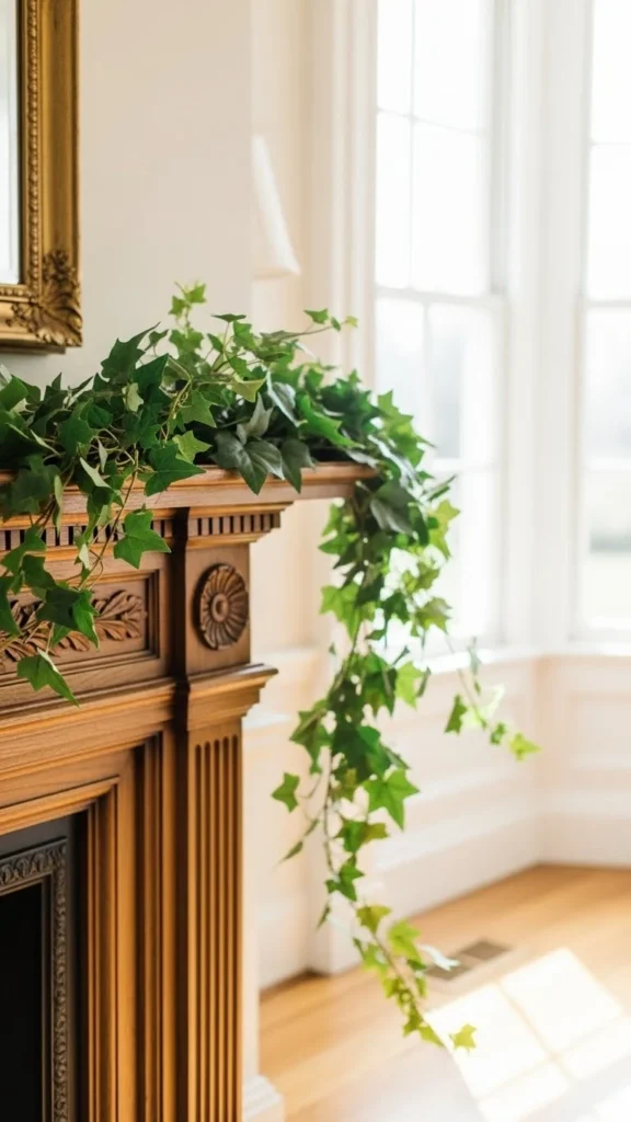 Ivy garlands are flexible and affordable. Let them trail naturally. Trim excess length to fit your mantel width.