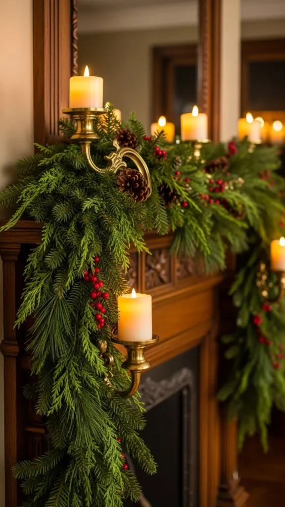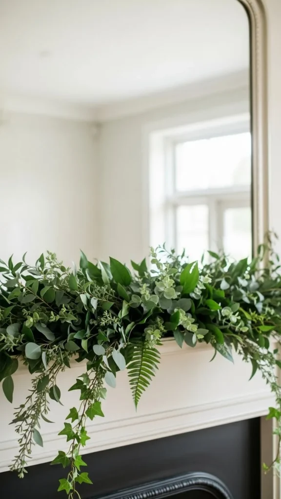 Mirrors reflect greenery and make it feel fuller. Keep the garland low so the mirror stays visible.