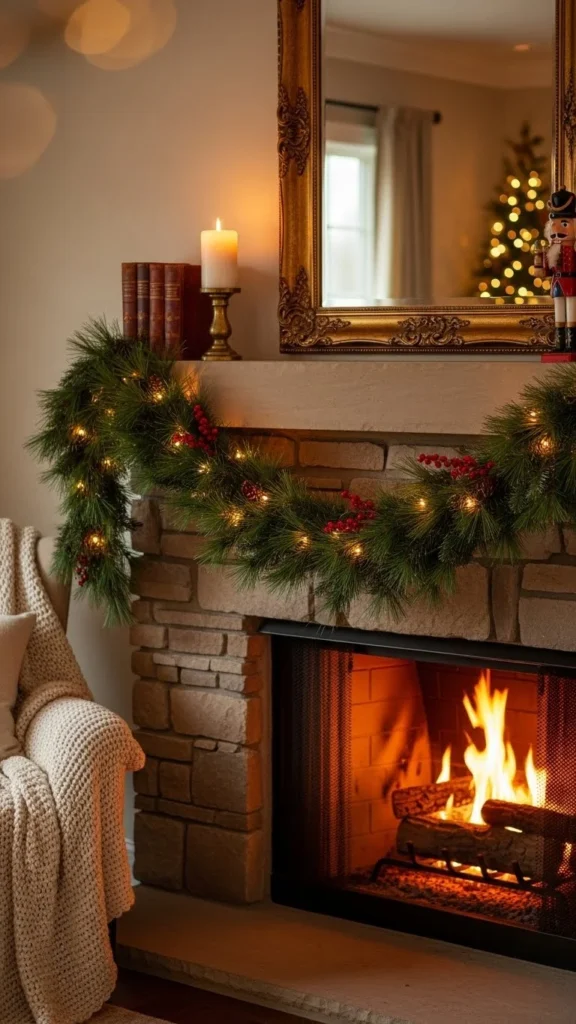 22. Green Garland with Stone Fireplace