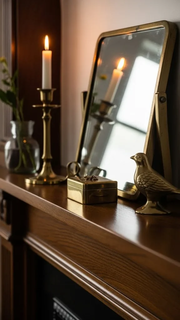 Metallics add light. Use small accents like candle holders or trays. Stick to one metal tone. Thrifted brass items often work well. Keep shine low to avoid glare.