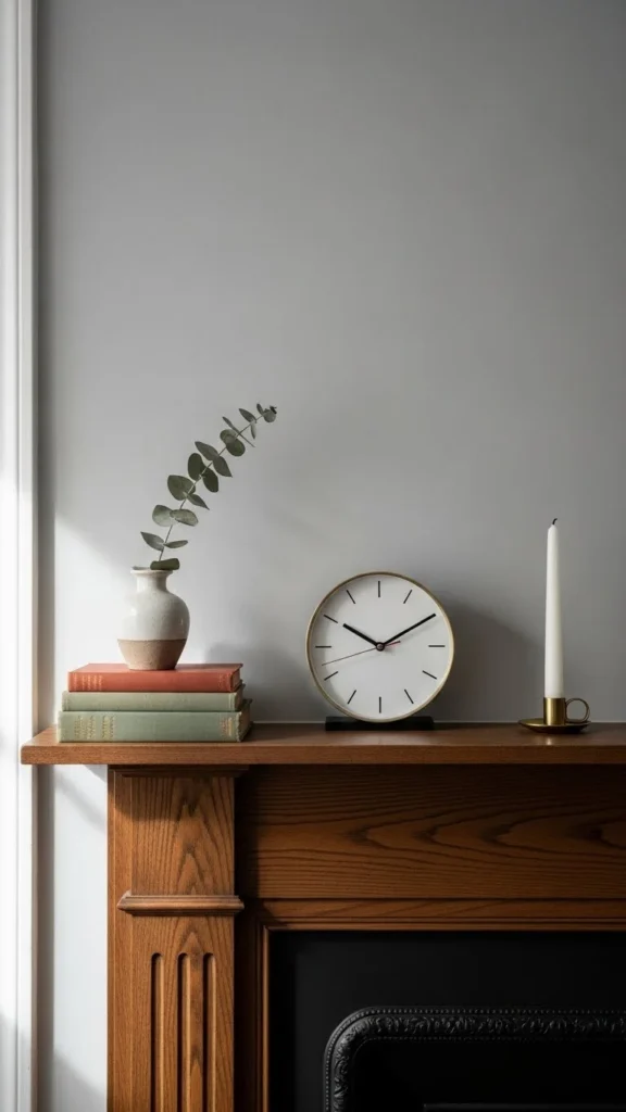 Sometimes less works best. Remove items until only a few remain. Open space lets the mantel breathe. This costs nothing and often feels calming.