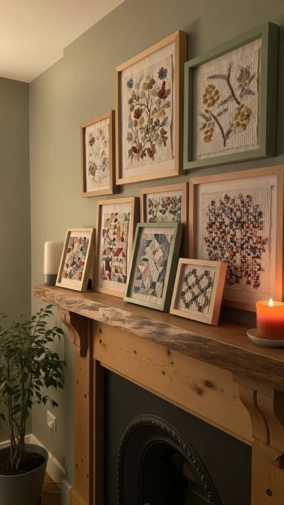 Frame fabric scraps or scarves. This adds texture without color overload. Neutral textiles work best. Swap fabric seasonally if you like change.
