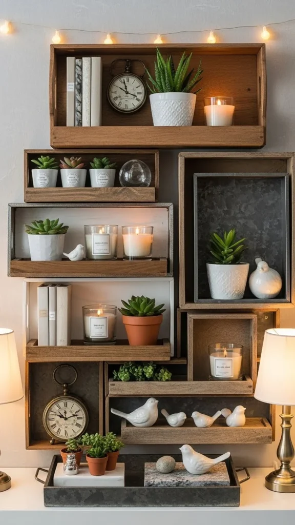 Varying height keeps the eye moving. Combine tall, medium, and low objects. Avoid lining everything up evenly. Adjust until it feels balanced. This technique works with items you already own.