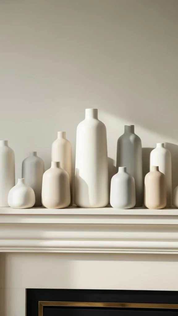 Matching or similar vases create order. Use neutral colors for a calm look. Fill them with dried branches or leave them empty. Height matters here. Keep one slightly taller than the other. This small difference keeps things from looking stiff. For budget savings, reuse bottles and paint them with leftover wall paint. Matte finishes work best. Place the vases closer together so they feel intentional. This style fits modern and classic rooms alike.