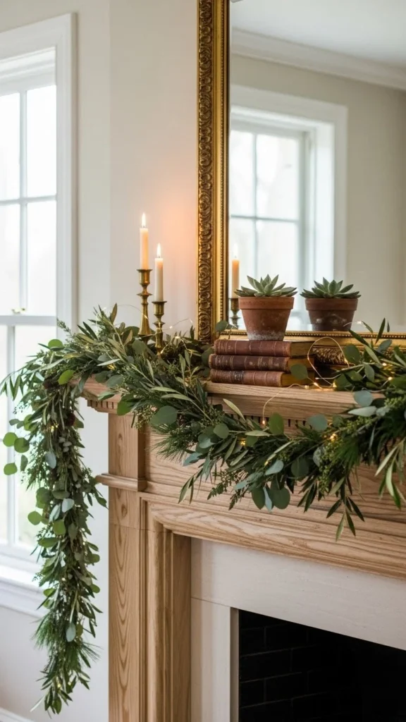 Greenery adds life without fuss. Faux garlands are easy to manage and reusable. Drape them loosely rather than pulling tight. This keeps the look natural. If buying new feels expensive, use individual stems wired together. Focus greenery toward the center and let ends fall gently. Pair with neutral decor so the green stands out. This works well year-round.