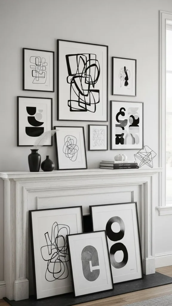 Black and white decor feels timeless. Use prints, frames, or objects. Keep colors limited so the contrast does the work. This approach works well in modern living rooms. Mix one soft texture, like fabric or greenery, to avoid harsh lines.