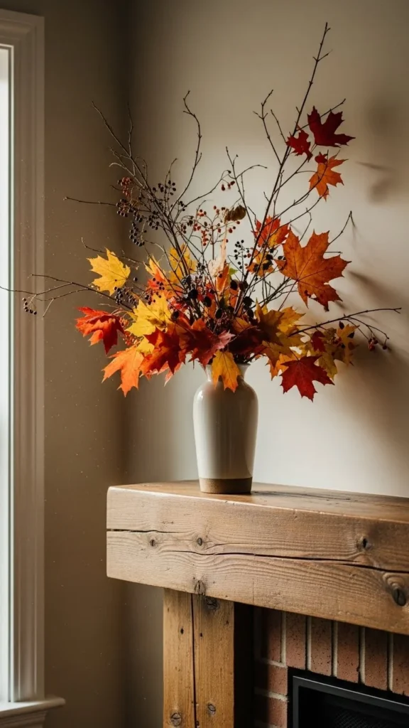 Branches change easily with seasons. Use what you find outdoors. Clean and dry them first. A tall vase gives height without bulk. This idea costs nothing and feels thoughtful. Store vases year-round and rotate branches as seasons change.