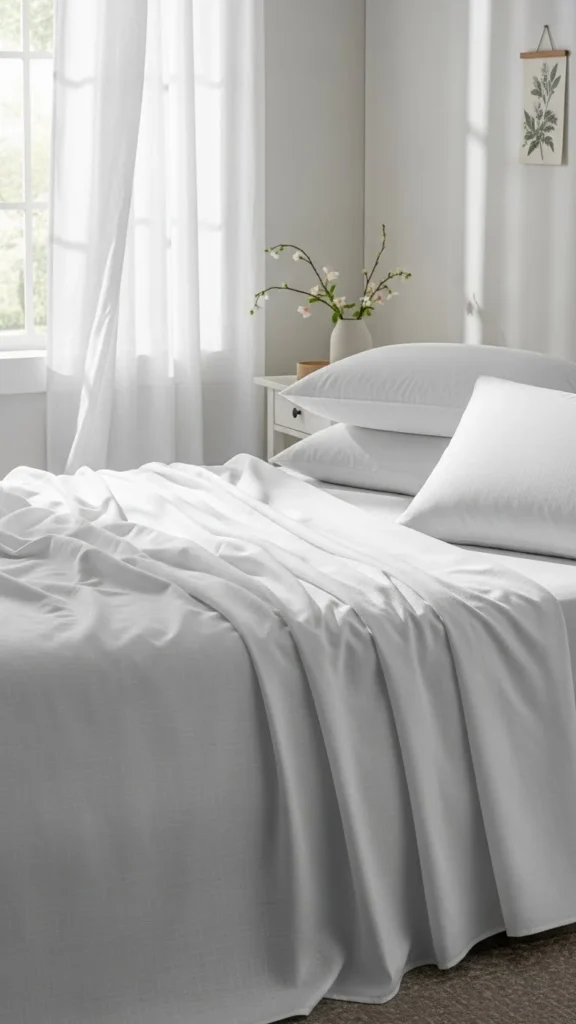 Heavy winter layers can make a room feel closed in. Swapping them for breathable cotton sheets changes the mood right away. Look for percale or washed cotton for a soft feel that still looks clean. White, cream, or pale stripes work well with spring light.