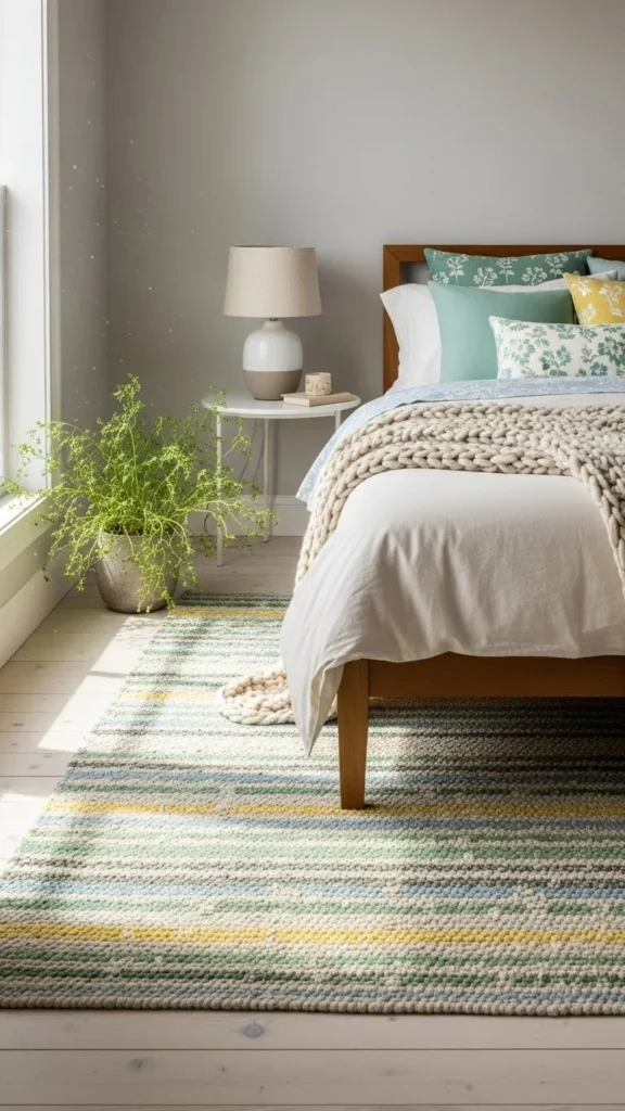 A thin rug adds warmth without heaviness. Light patterns work well for spring.