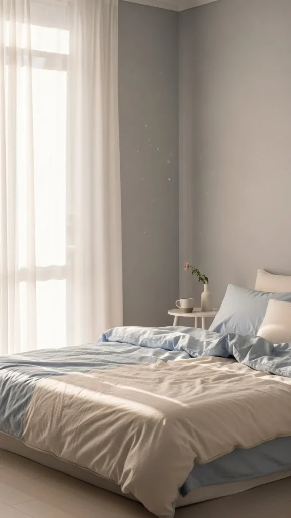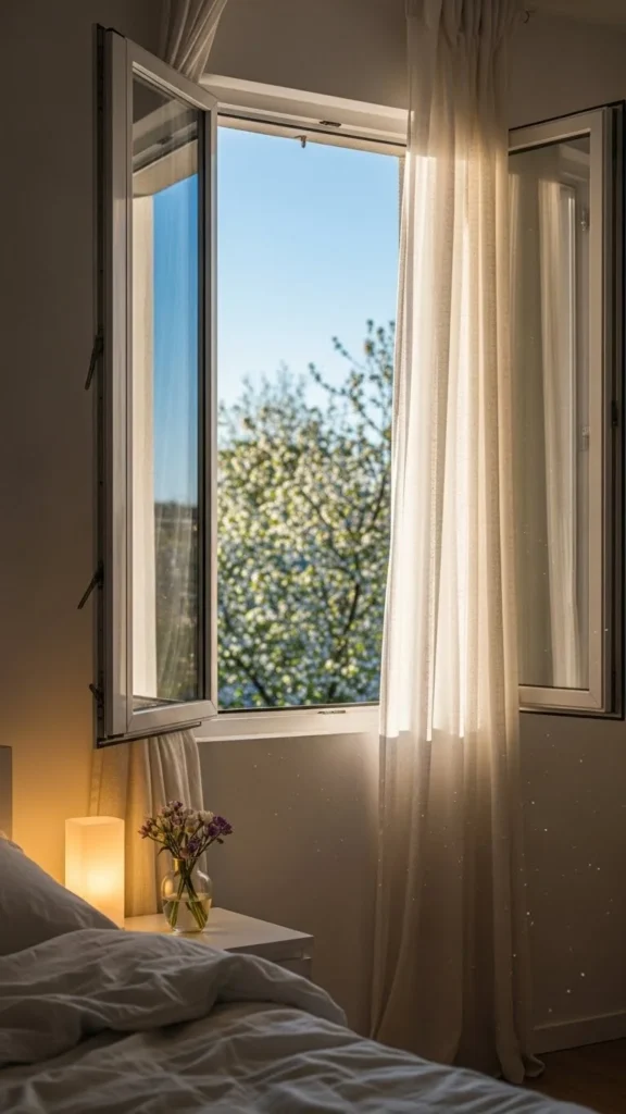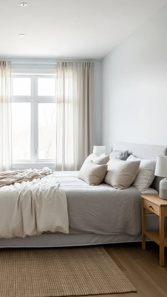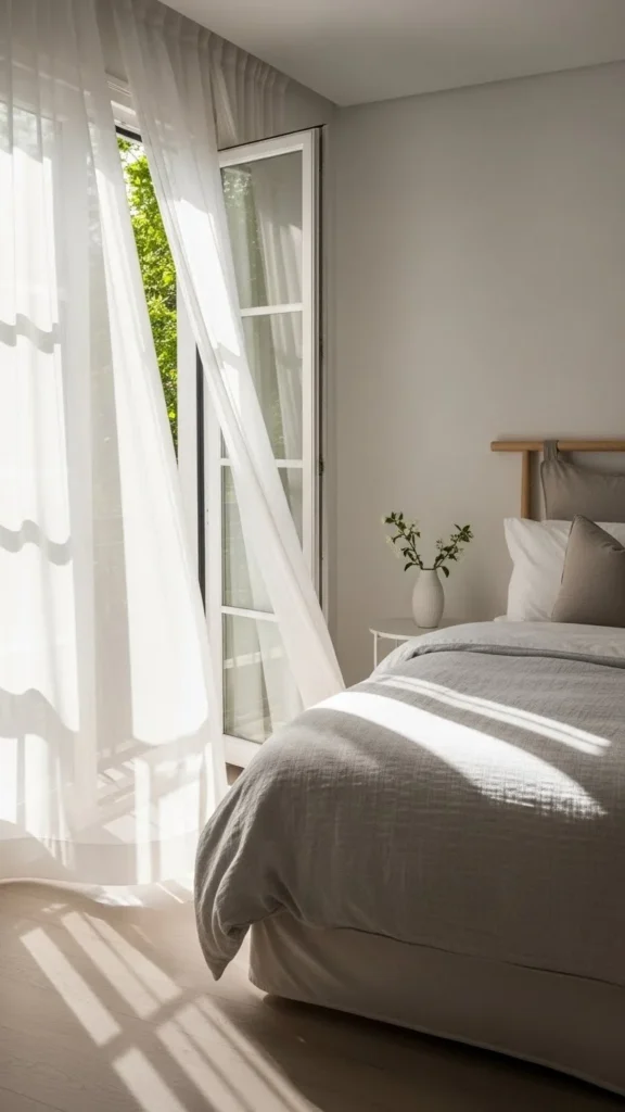 Dark or thick curtains can make a bedroom feel smaller. Sheer panels let daylight move through the space while still offering privacy.