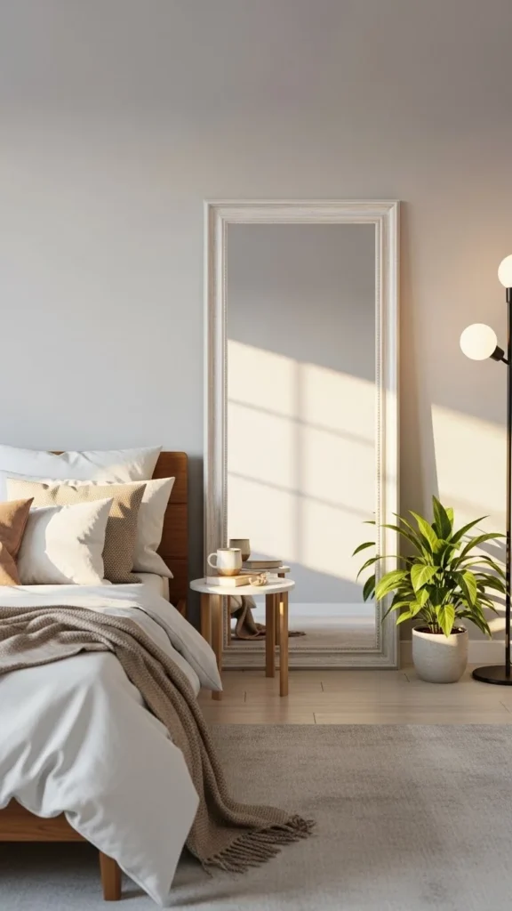 You do not need a jungle. One easy plant adds life to a bedroom. Snake plants, pothos, or faux greenery all work.