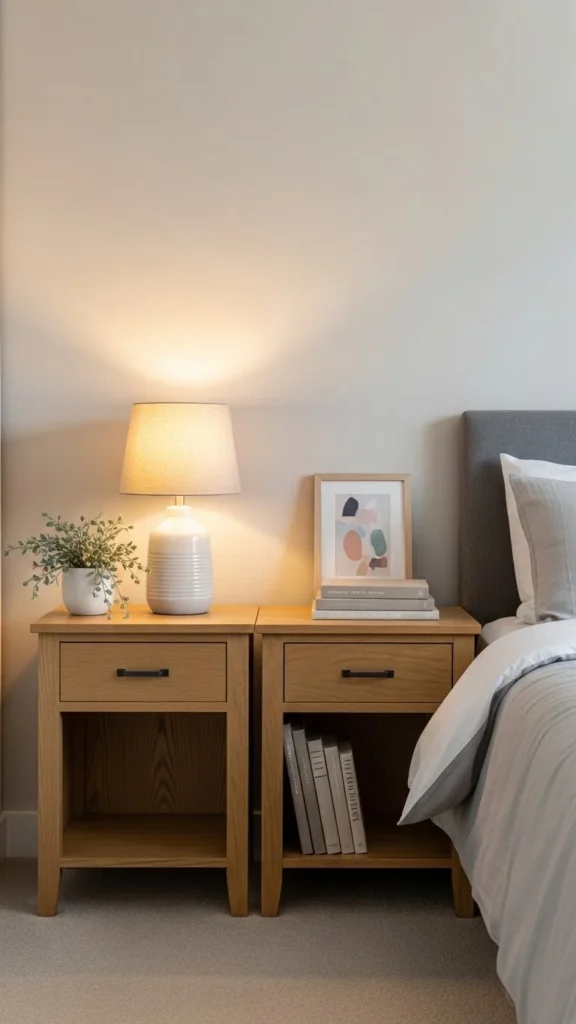 You do not need matching items. Mixing textures keeps things casual. Try a woven laundry basket or a wooden bedside tray.