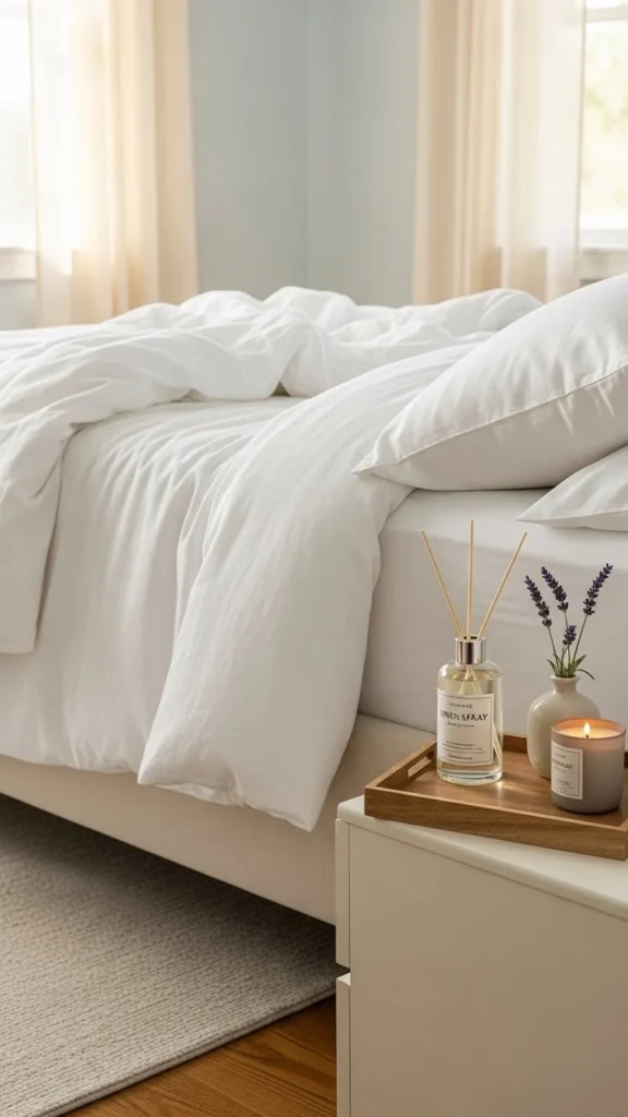 A mild linen spray or sachet works better than strong candles.