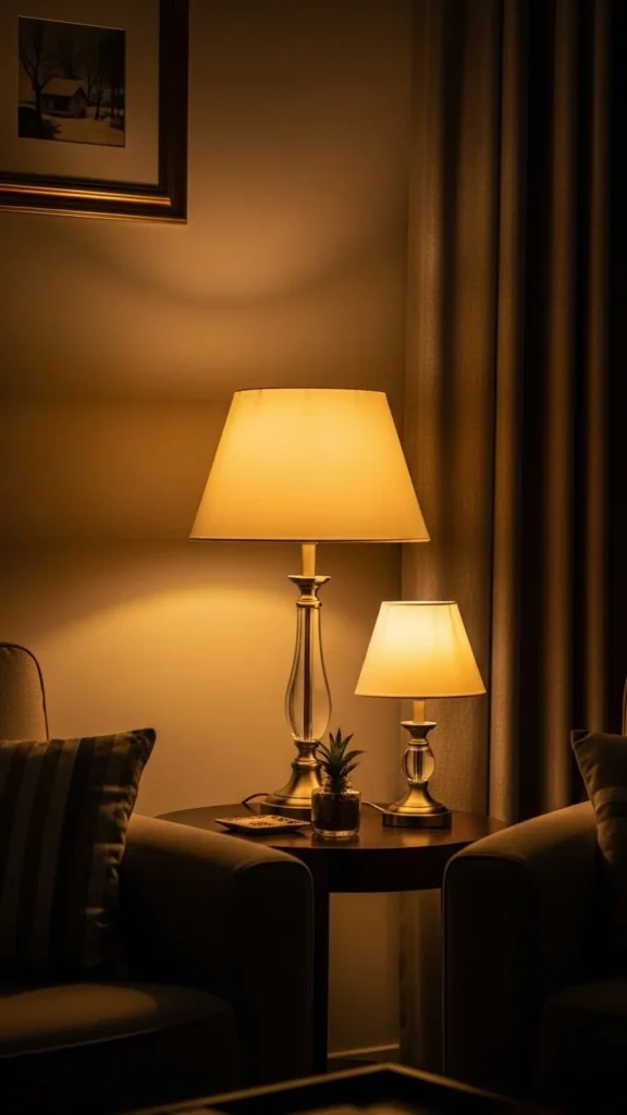 Place lamps at different heights. A floor lamp near the sofa and a table lamp on a side table work well together. Thrifted lamps often look great with a new fabric shade. That small update costs little and feels intentional.
