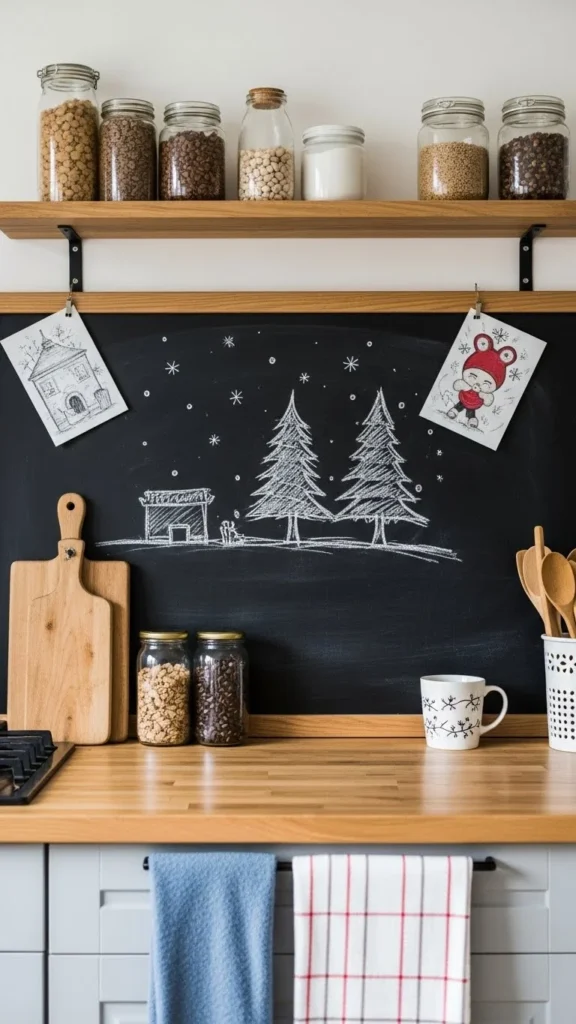 A small chalkboard adds personality. Draw simple shapes or patterns.