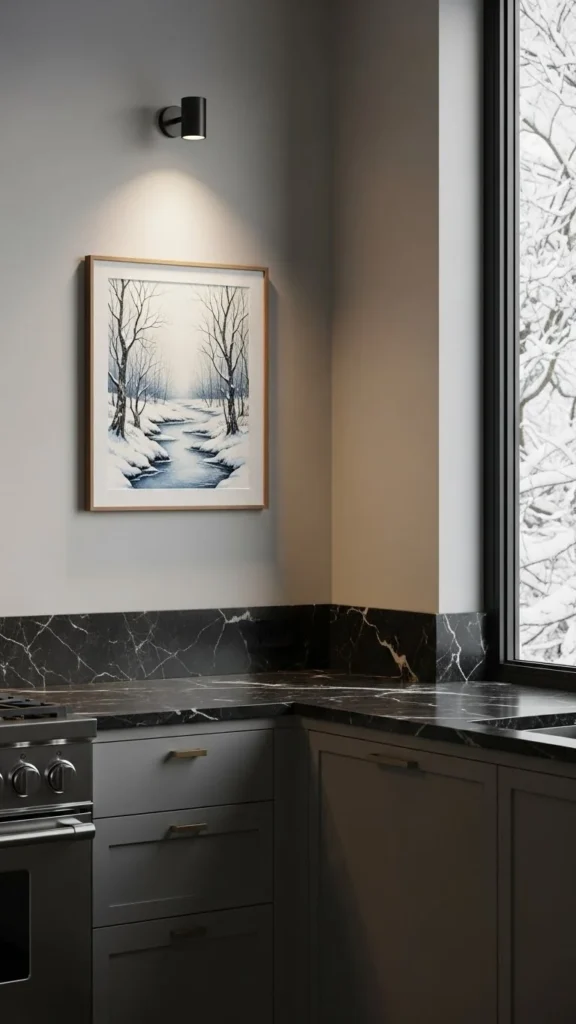 Add a small print or sketch with winter themes. Think plants, kitchens, or calm landscapes.