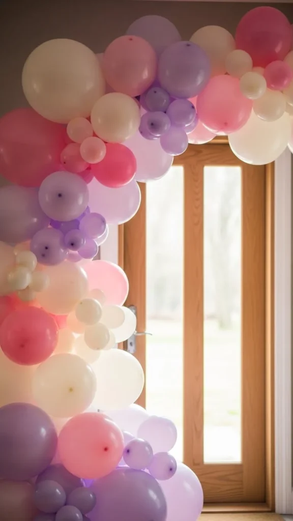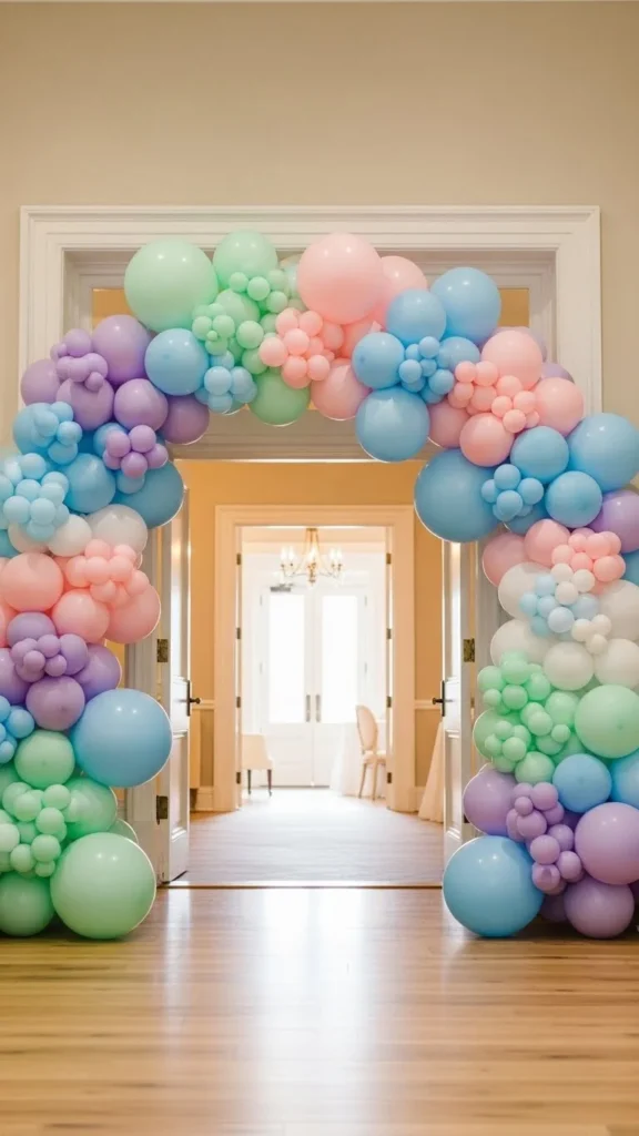 Pastel arches work well for baby showers, spring events, and daytime parties. The key is gentle color variation. Choose three shades within the same color family. Mix balloon sizes to avoid a stiff shape. Smaller balloons help fill gaps and smooth the curve.