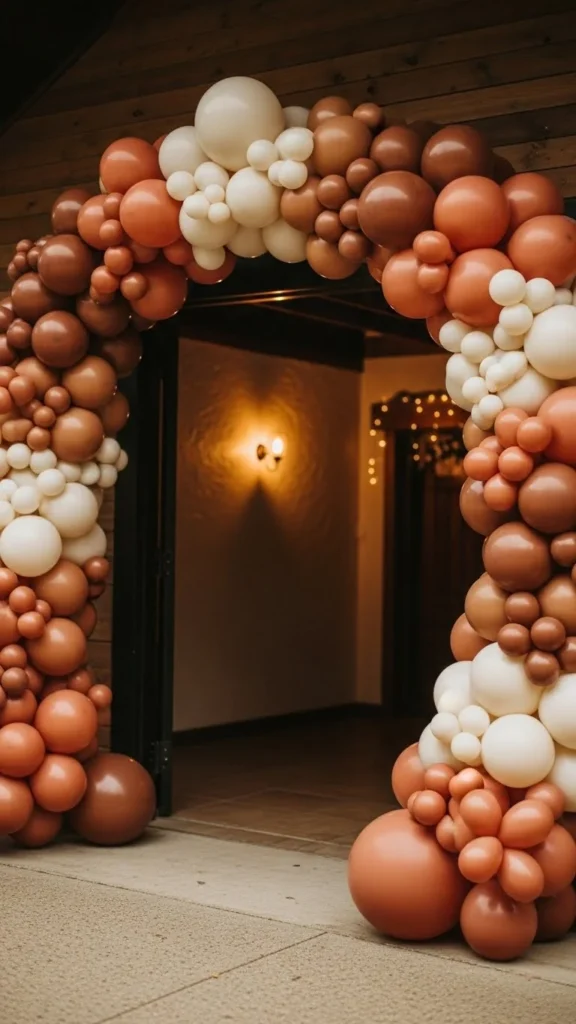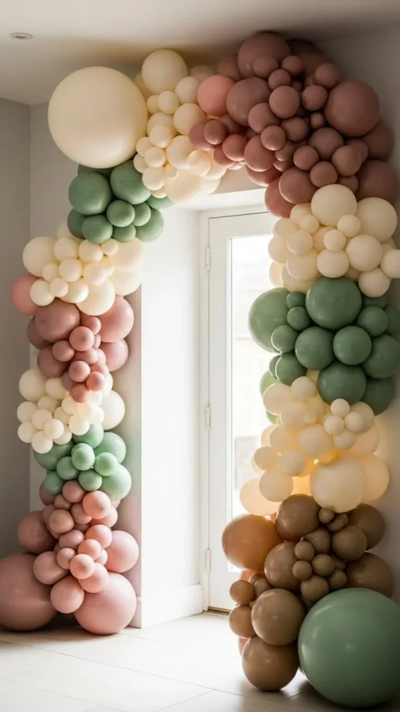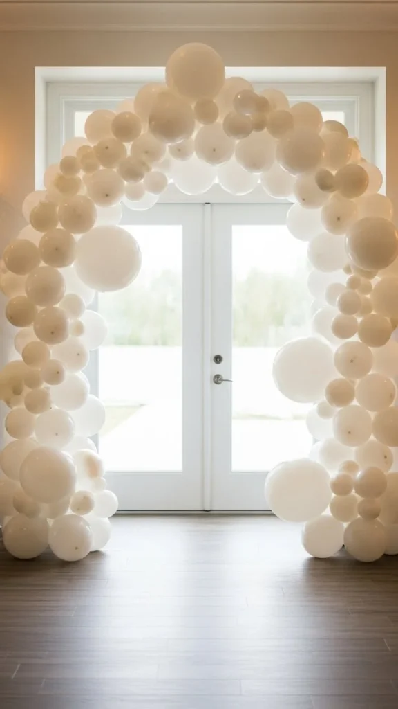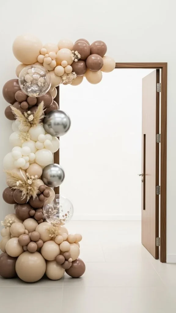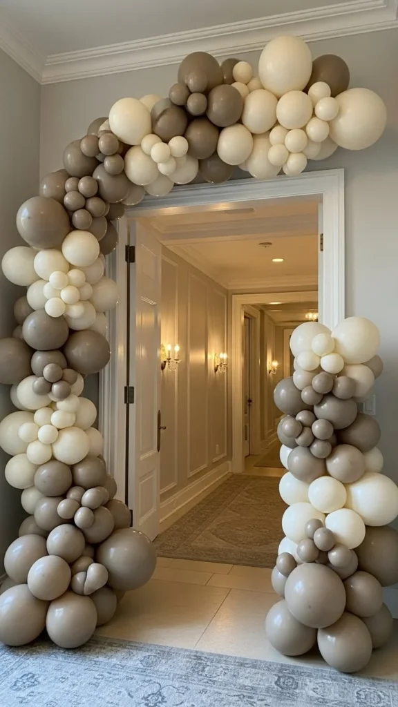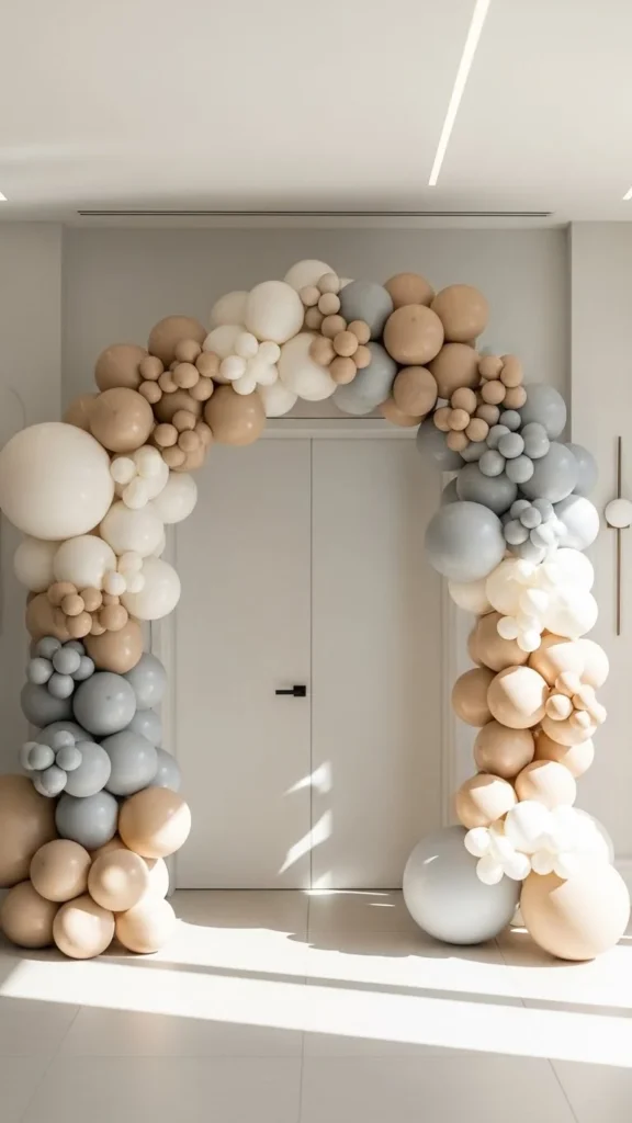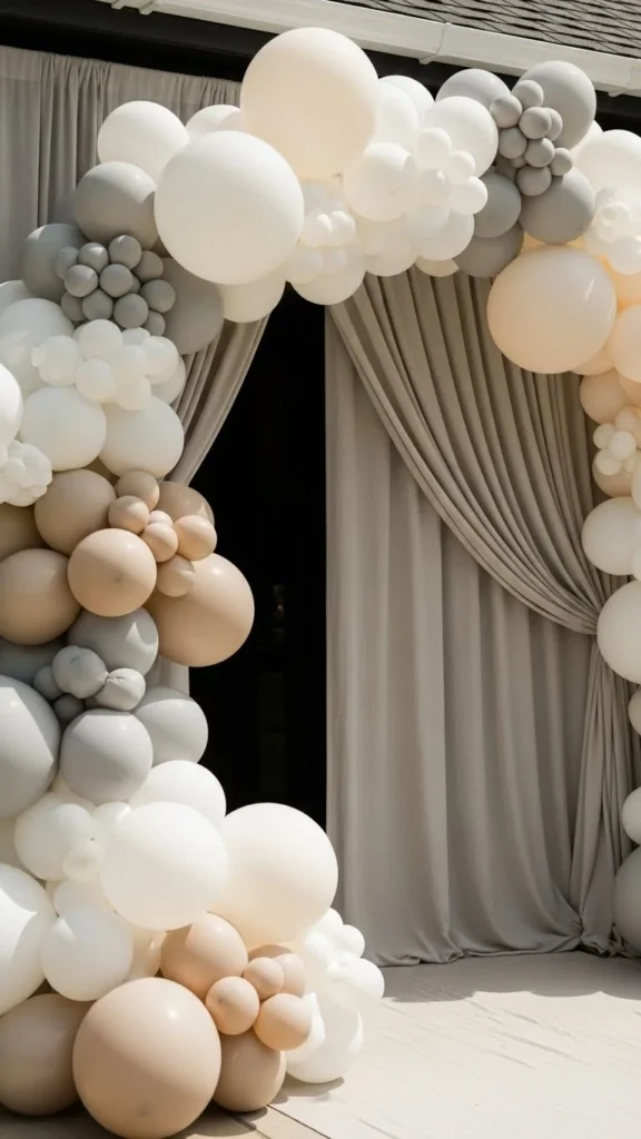 Neutral arches suit modern homes and relaxed gatherings. Beige, ivory, and muted gray keep things calm and flexible. This style works year-round and pairs well with wood or stone entryways.