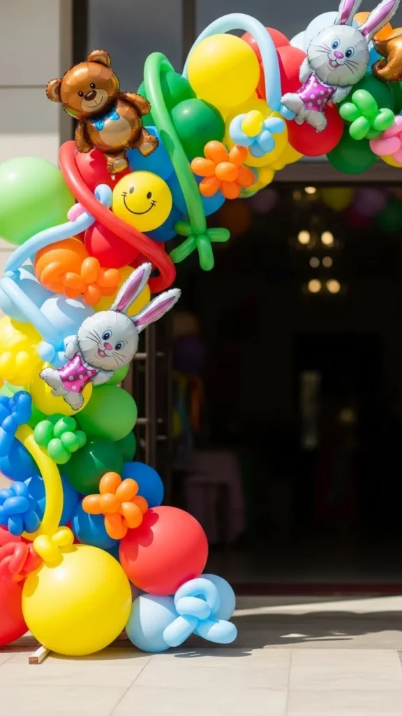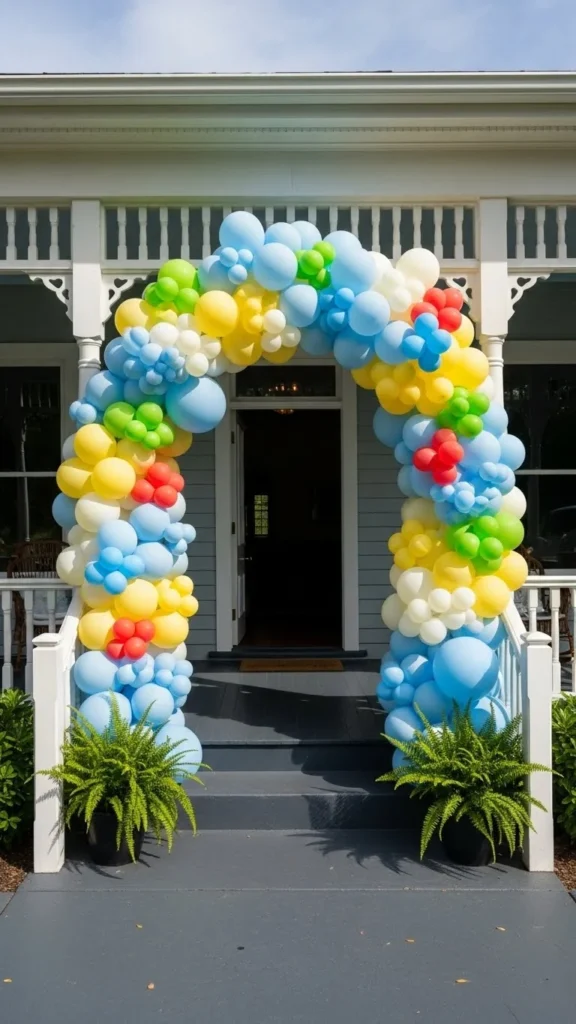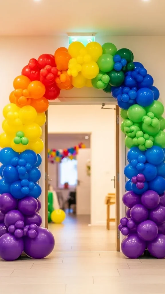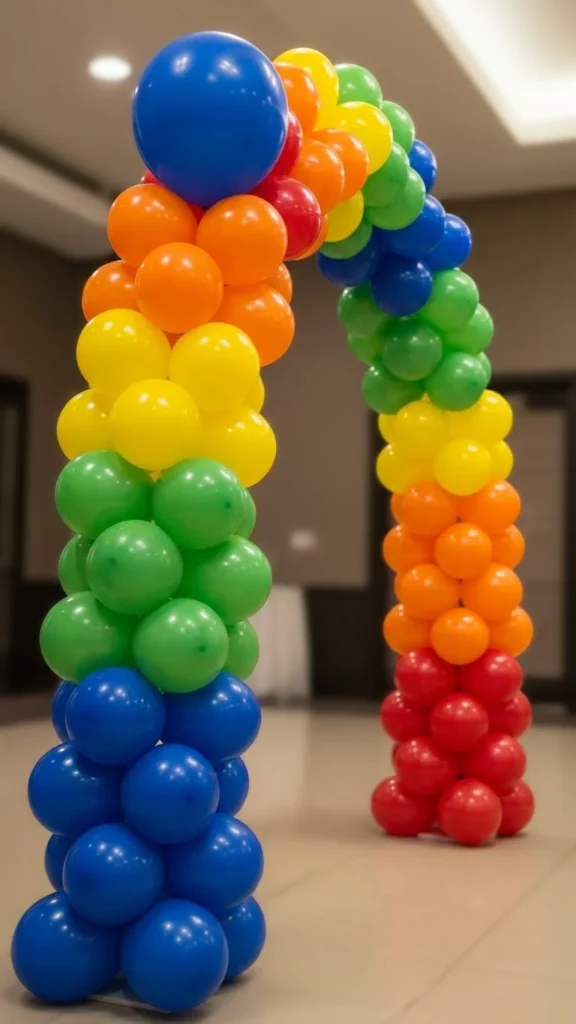 Rainbow arches suit kids’ parties. Keep colors bold but balanced.