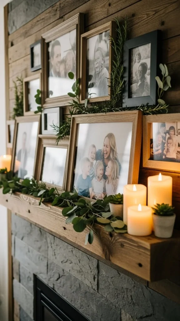 Add one or two framed family photos into your holiday mantel. This keeps the setup personal.