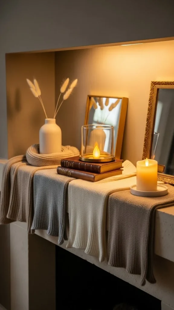Place a folded scarf or table runner along the mantel shelf as a base layer.