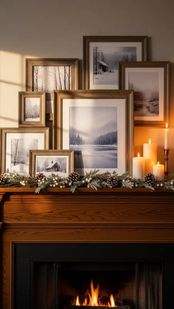 Swap one or two frames with winter scenes or simple holiday prints. Lean them against the wall instead of hanging them for a relaxed look.