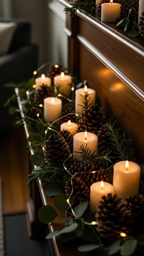 Pinecones add texture and a winter feel without color overload. Scatter them between candles or greenery.