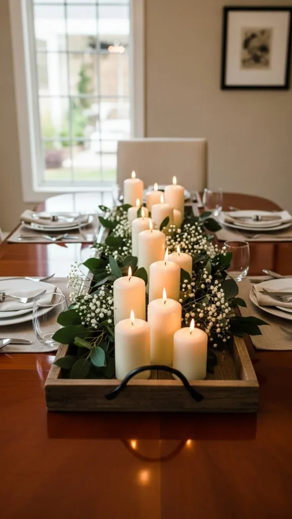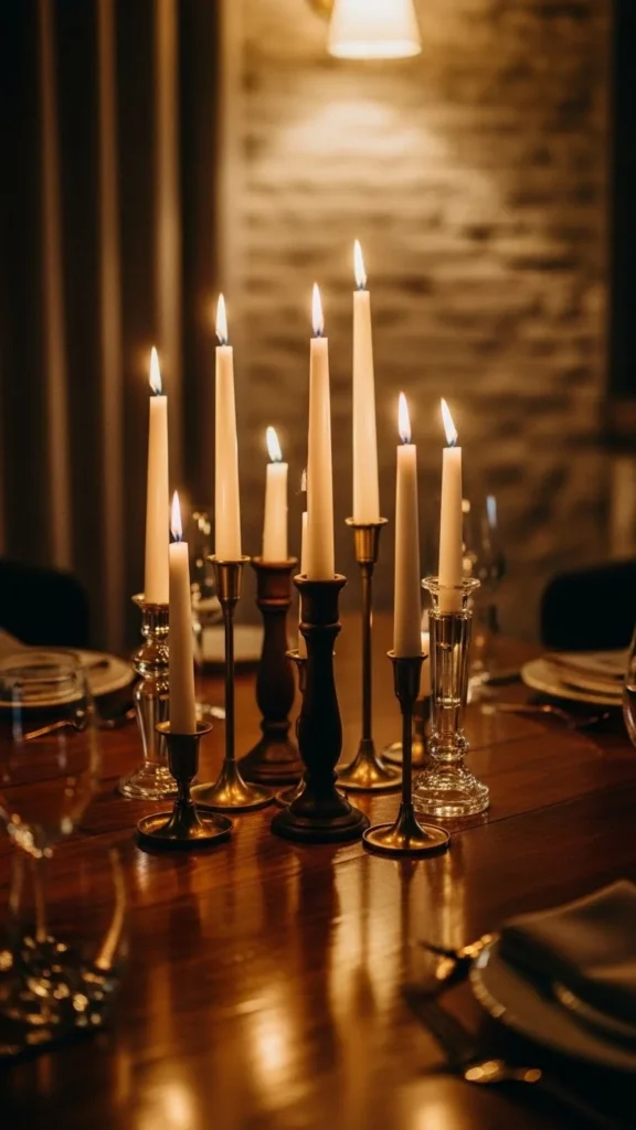 Candles bring warmth to the table without clutter. Taper candles look clean and timeless, especially when grouped in different heights.