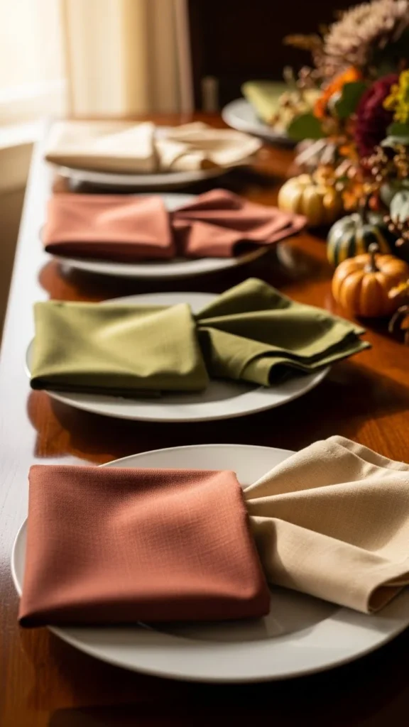 Choose napkin colors that match the season. Soft neutrals or deep tones fit New Year dinners.
