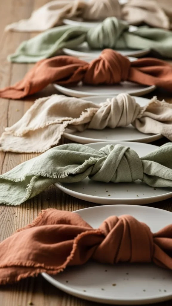 Fabric napkins instantly change how a table feels. Loose knots look relaxed yet styled.