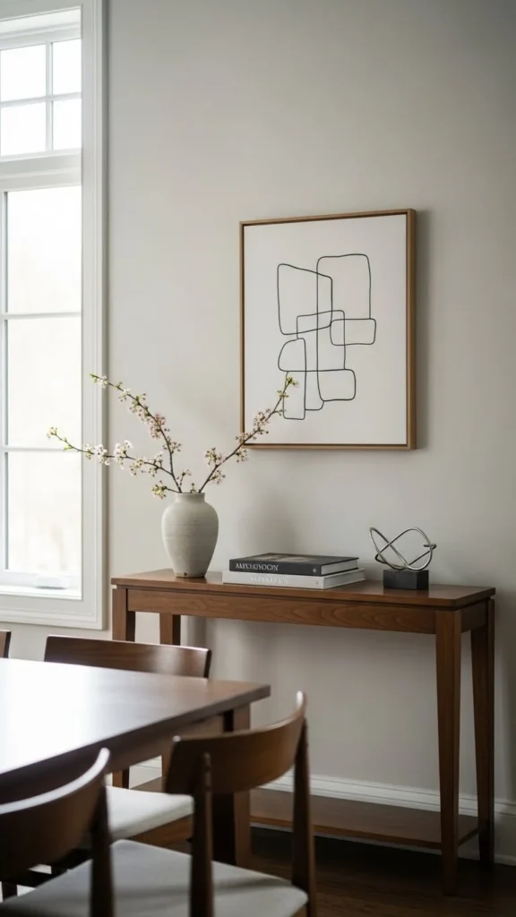 You can style consoles with items you already own. This adds function without crowding the room. Guests find it helpful during larger meals.