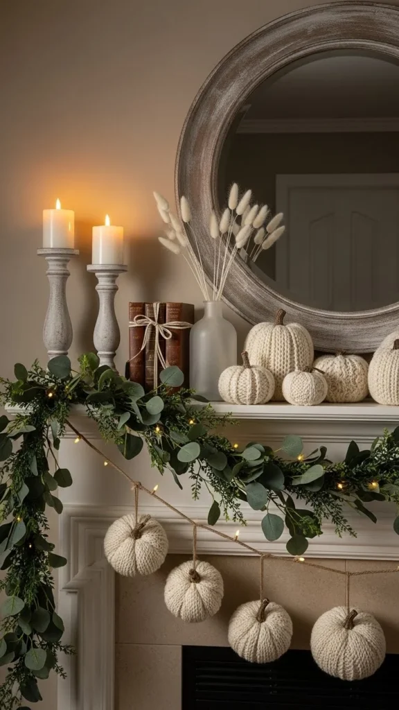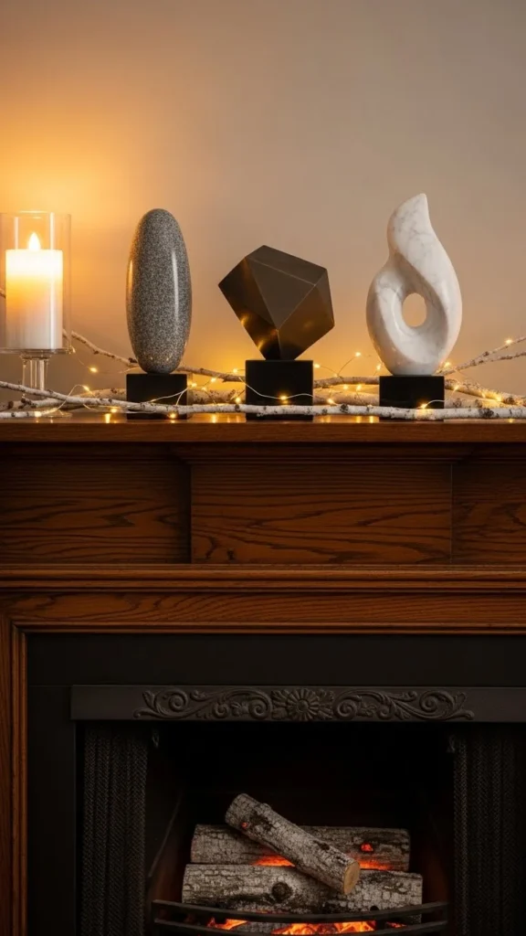 These objects add quiet seasonal cues without overwhelming the mantel.