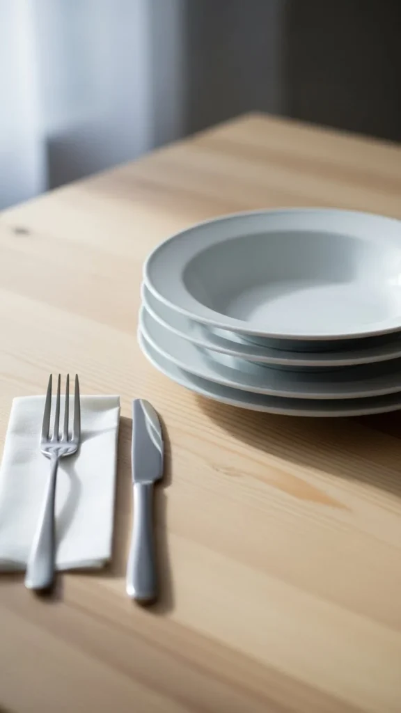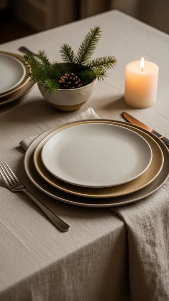 White plates keep winter tables calm and tidy. Layering adds depth without extra color.
