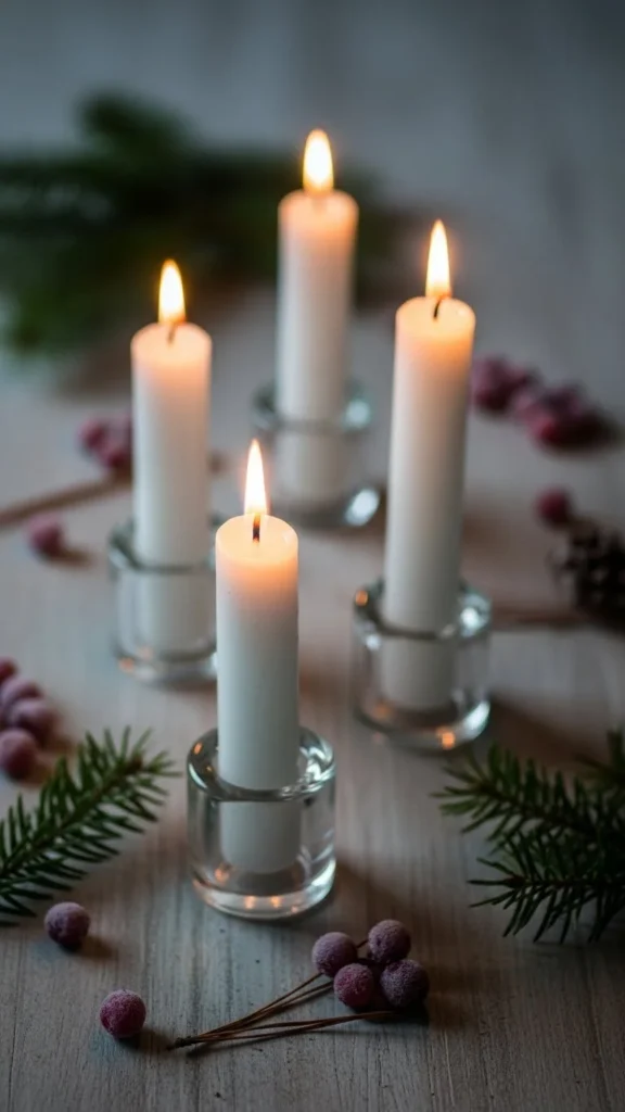 Candles bring warmth during dark evenings. Keep the setup simple.
