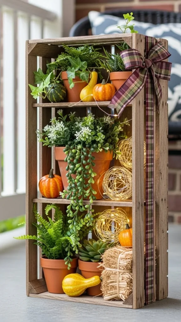 Crates hold decor and act as signs.