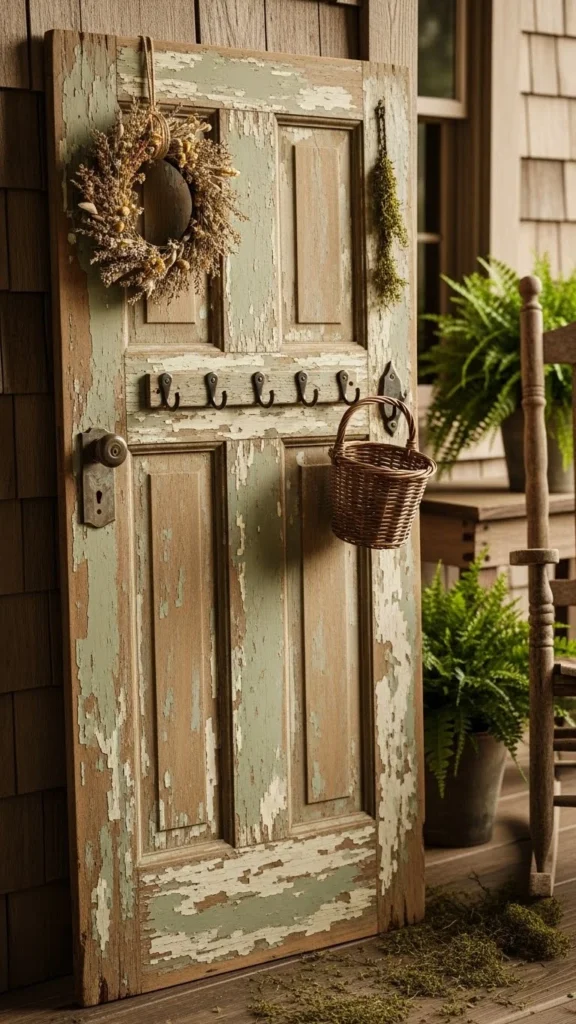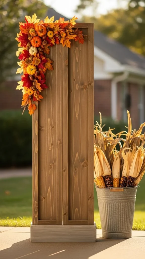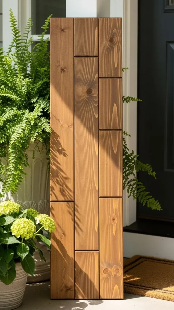 Rustic wooden boards feel timeless and work across seasons. Choose unfinished wood or lightly stained planks for a relaxed look. Tall boards draw the eye upward and frame doorways nicely.