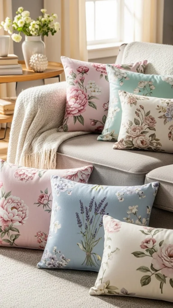 Floral throw pillows are one of the easiest ways to change how a room feels. You do not need new furniture or paint. A couple of covers can do the work. Choose small-scale floral prints instead of oversized patterns. They feel calmer and easier to mix.