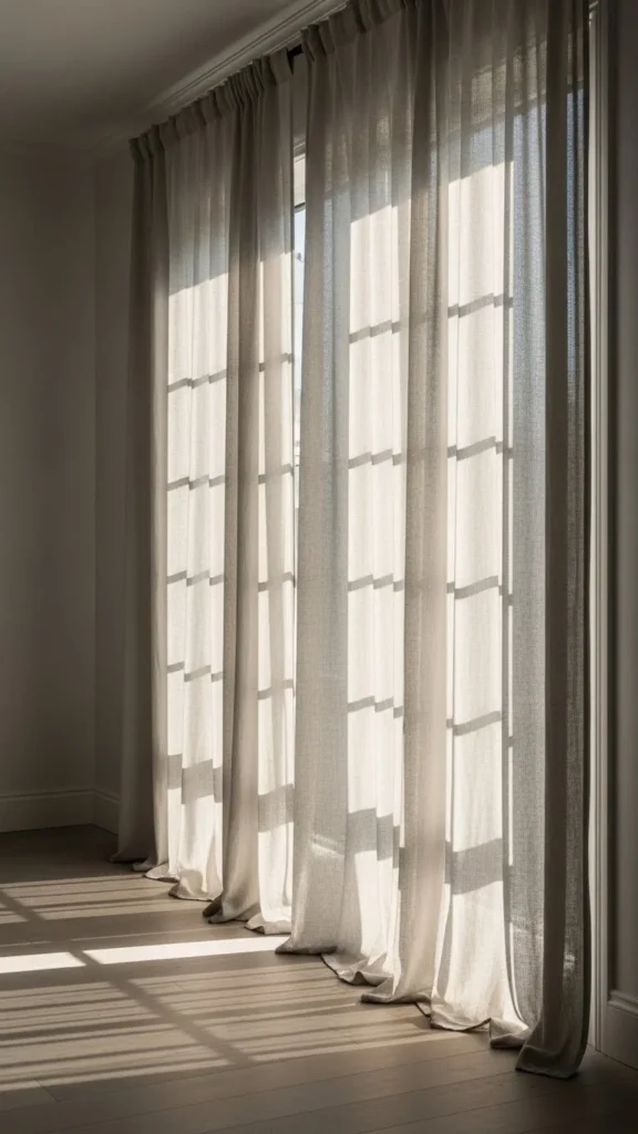 Heavy curtains can make a space feel closed off. Linen panels let light move through while still offering privacy. This single change can shift the mood of an entire room.