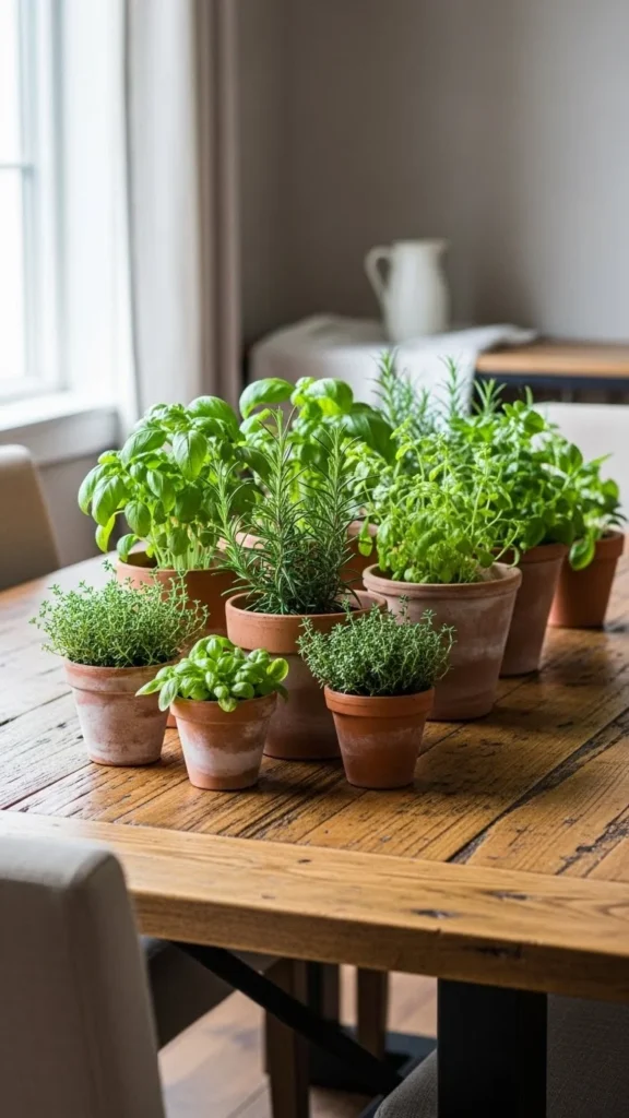 Terracotta pots bring warmth and an earthy feel. They work well with herbs or small plants.