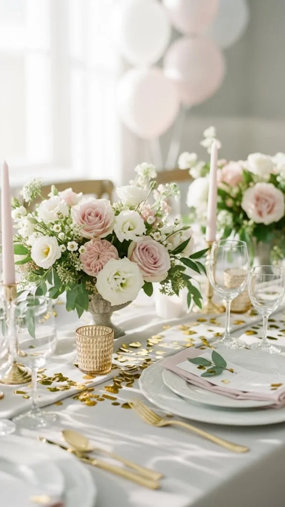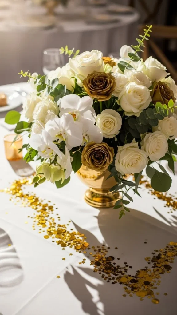 Gold Confetti with Floral Centerpieces